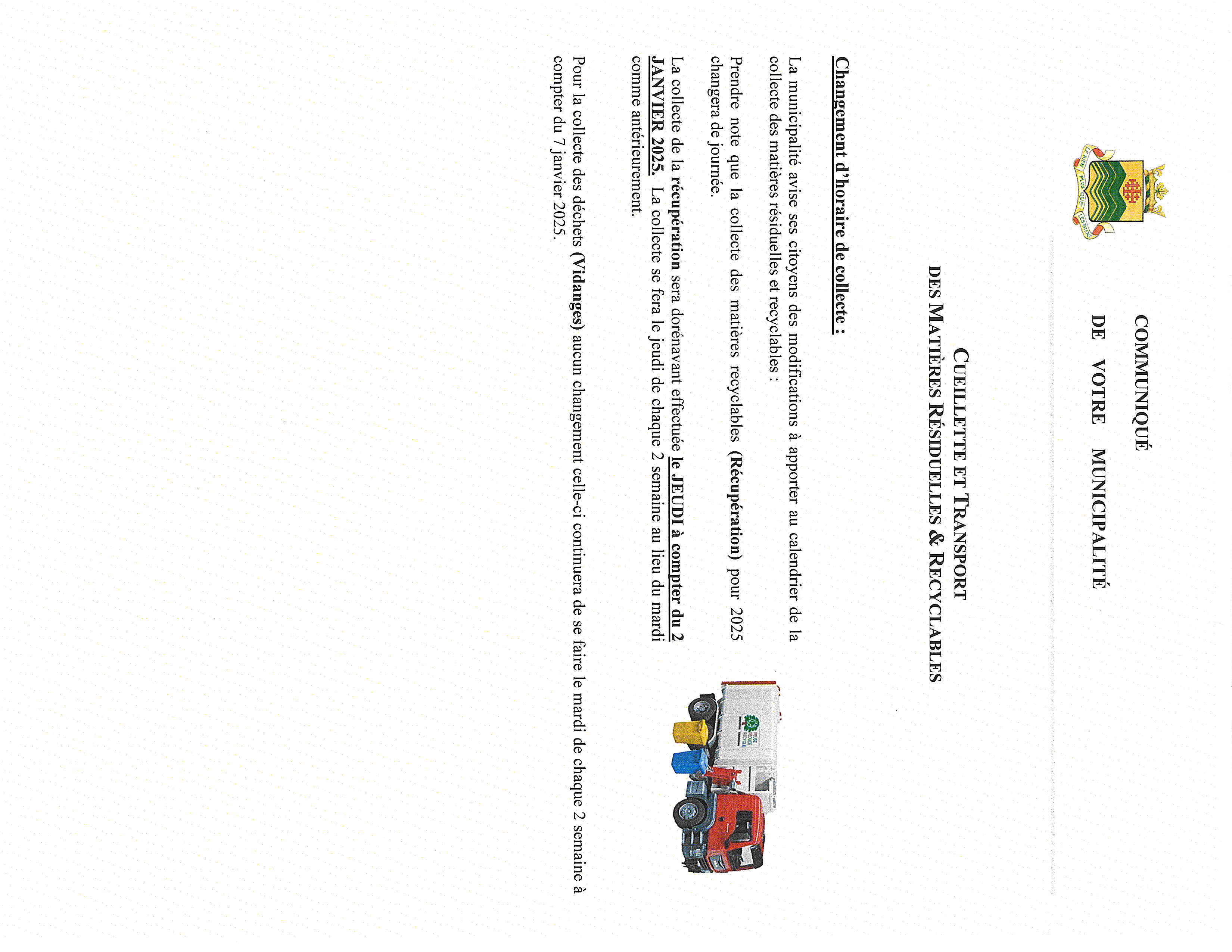 Changement d'horaire de collecte récupération